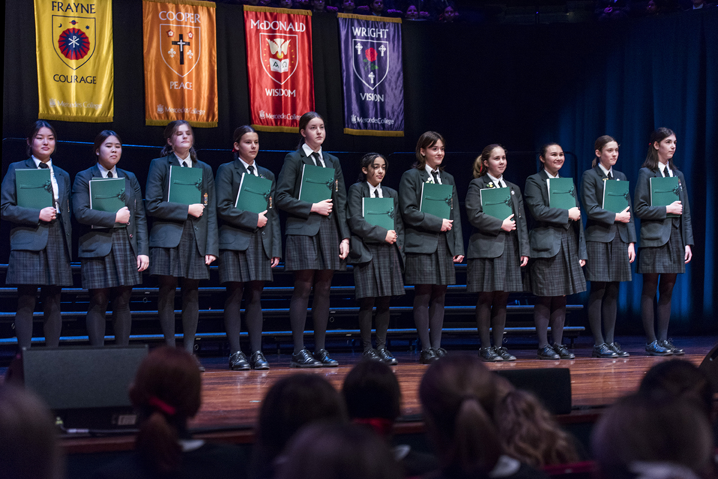 On Friday 22 October, Mercedes College celebrated their high achievers at the Perth Concert Hall, with the Mercedes house banners proudly displayed and the 175 numbers lighting up the stage to commemorate the College’s humble beginnings 175 years ago. Our Year 7 students represented our College community, as they sat elegantly above the stage, waiting for their musical performance tribute to the Year 12s.