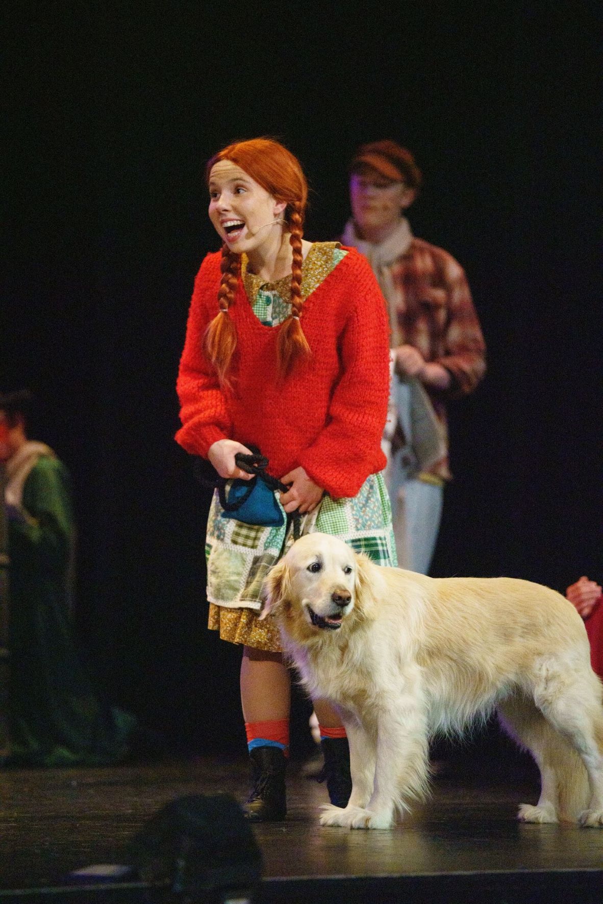 Two dogs added a sense of realism and emotion to this show. Thanks to Miss Armstrong’s dog Gilly who was the dog taken to the dog pound, and extra special thanks to the Cormack family for the loan of Lucy the Golden Retriever to play Sandy – the stray dog that Annie adopts as her own dog. Lucy is the most placid and lovely dog and she sat there patiently night after night while Annie sang Tomorrow. The dogs were a big hit backstage and both dogs got a lot of pats and love from the cast in the week we were at the Regal Theatre.