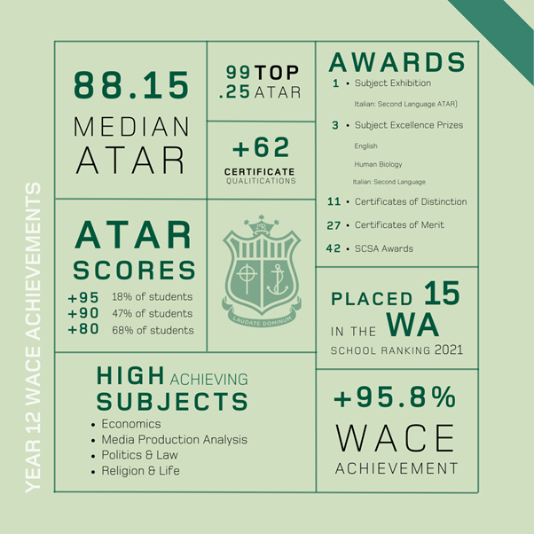 As we embark on this new year, we must first acknowledge and congratulate our 2021 graduates for their fantastic results in their WACE examinations. Their determination and resilience both academically and through pastoral care initiatives all contributed to these outstanding results! With an median ATAR of 88.15 and 47% of 2021 graduates achieving ATAR scores above 90, Mercedes College has once again placed in the top fifteen schools in Western Australia!