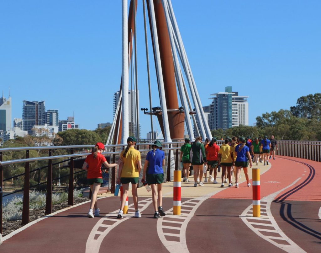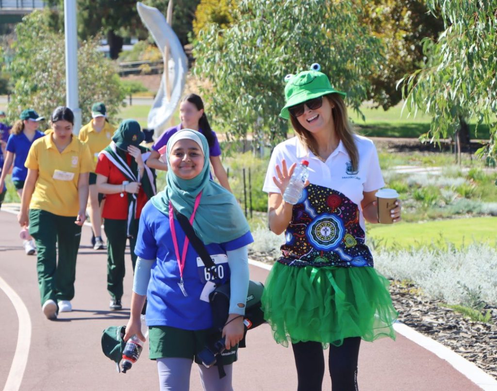 On the final day of term, our Frog Jog brought the whole school community together in an uplifting display of spirit and service. The girls raised an incredible $14,572 in support of Caritas and Mercy Works, and their joy and determination were on full display as they walked a 7KM course becoming the first community group to cross the new Boorloo Bridge in the process.