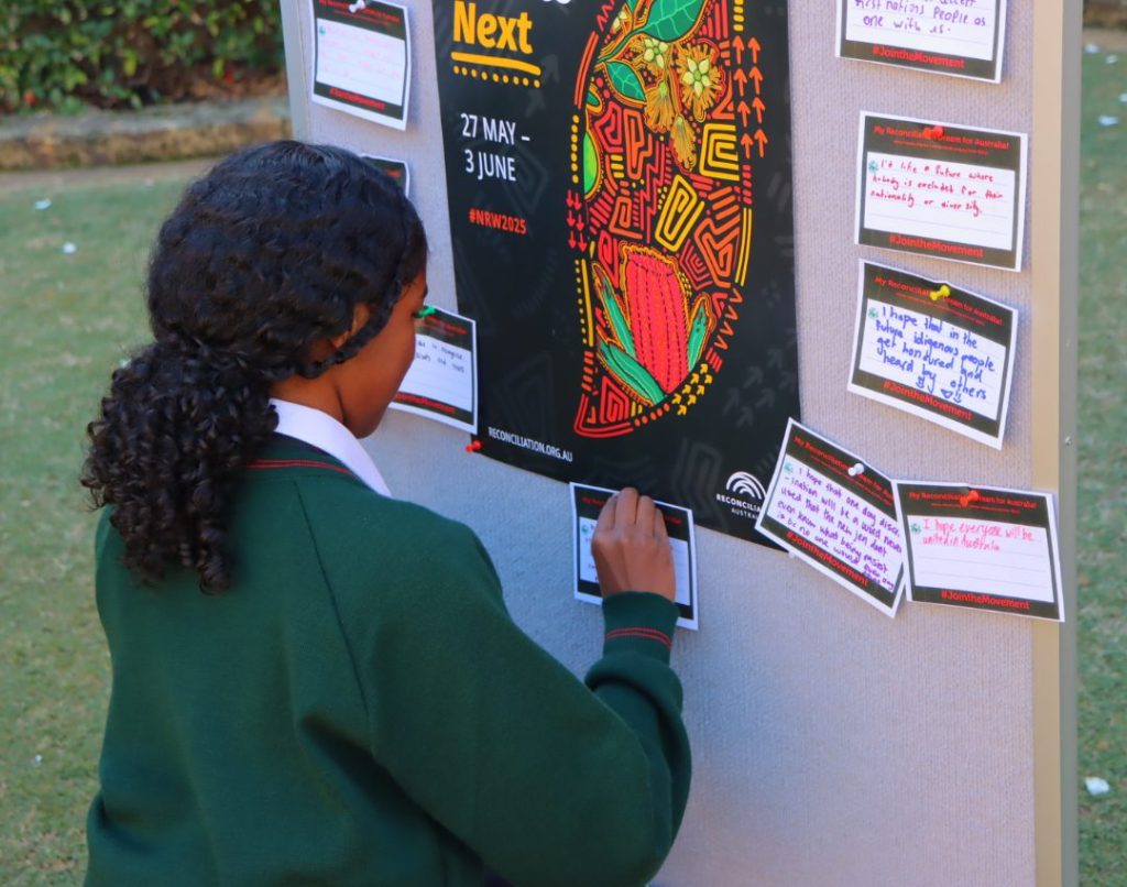 This week, Mercedes College commemorated National Reconciliation Week with a range of thoughtful and engaging initiatives that invited reflection, learning, and cultural appreciation. In classrooms, students explored stories such as Franny, a modern-day freedom fighter, alongside other activities designed to deepen understanding of First Nation histories and perspectives. On Tuesday, a Reconciliation Week stall encouraged students to write and share their personal hopes for reconciliation. These messages were filled with empathy, unity, and a strong desire for meaningful change. Our First Nations students also took part in a MADALAH workshop and other special events, providing opportunities for connection, pride, and leadership. As a community, we continue to walk together on the path of reconciliation, committed to truth-telling, respect, and the celebration of First Nations cultures.