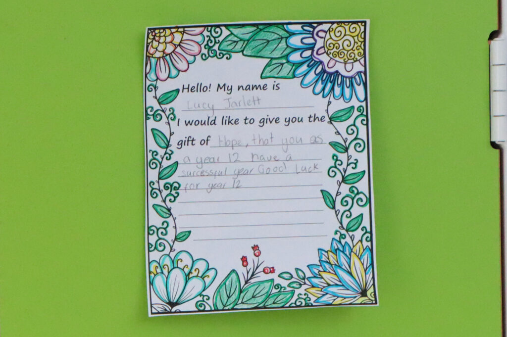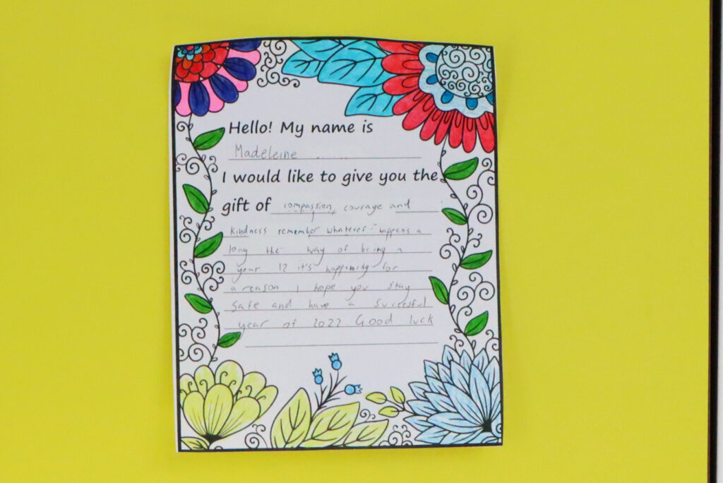 Across the campus the girls engaged in different ways, with many different activities on display. Some classes exchanged warm fuzzies and compliments, some handed out chocolates in homeroom. The Year Seven girls did a standout job, leaving notes for all Year Twelve students, wishing them gifts of hope, courage, kindness and compassion in the coming year.