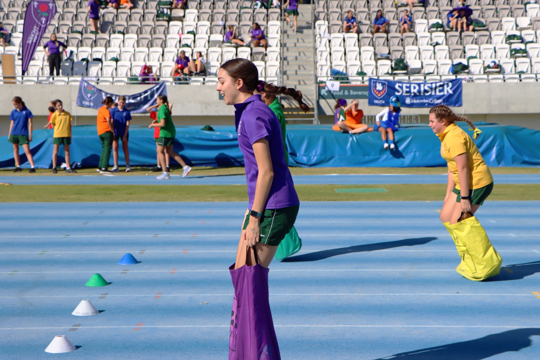 All staff and students headed out to WA Athletics Stadium in Mount Claremont last Friday 24 June for our much anticipated Interhouse Athletics Carnival. Being the first whole college event for the year, students and staff were eager to come together for a day of fun and competition. The glorious weather set the tone for what was a fantastic day. The HPE team implemented some changes to the structure of the carnival this year, with the goal of increasing student participation and building House spirit. The carnival opened with a new team event – House Chants. Well done to prefects and House Teacher Leaders for working on these and teaching them to your house. The enthusiasm, synchronicity and volume of the chants was outstanding! Congratulations to Mr Fleay and the Serisier team for winning the first ever chant competition.