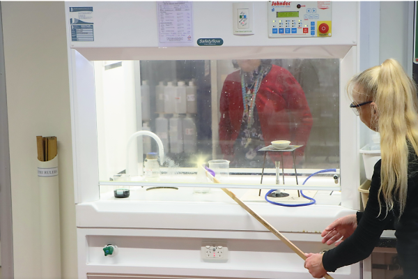 Their next clue directed them towards Head of Year Danielle Wares, who challenged students to utilise their understanding of differential air pressure in deploying partial vacuums to transport low-friction substances (see below).