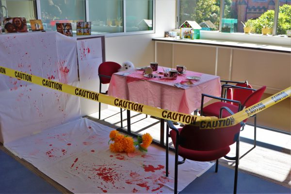 Students in Serisier encountered a mildly unusual sight over the past week – a  simulated crime scene in the breakout area. Students were challenged to put on their detective caps and examine the scene for clues, forensic evidence and indications of motive.