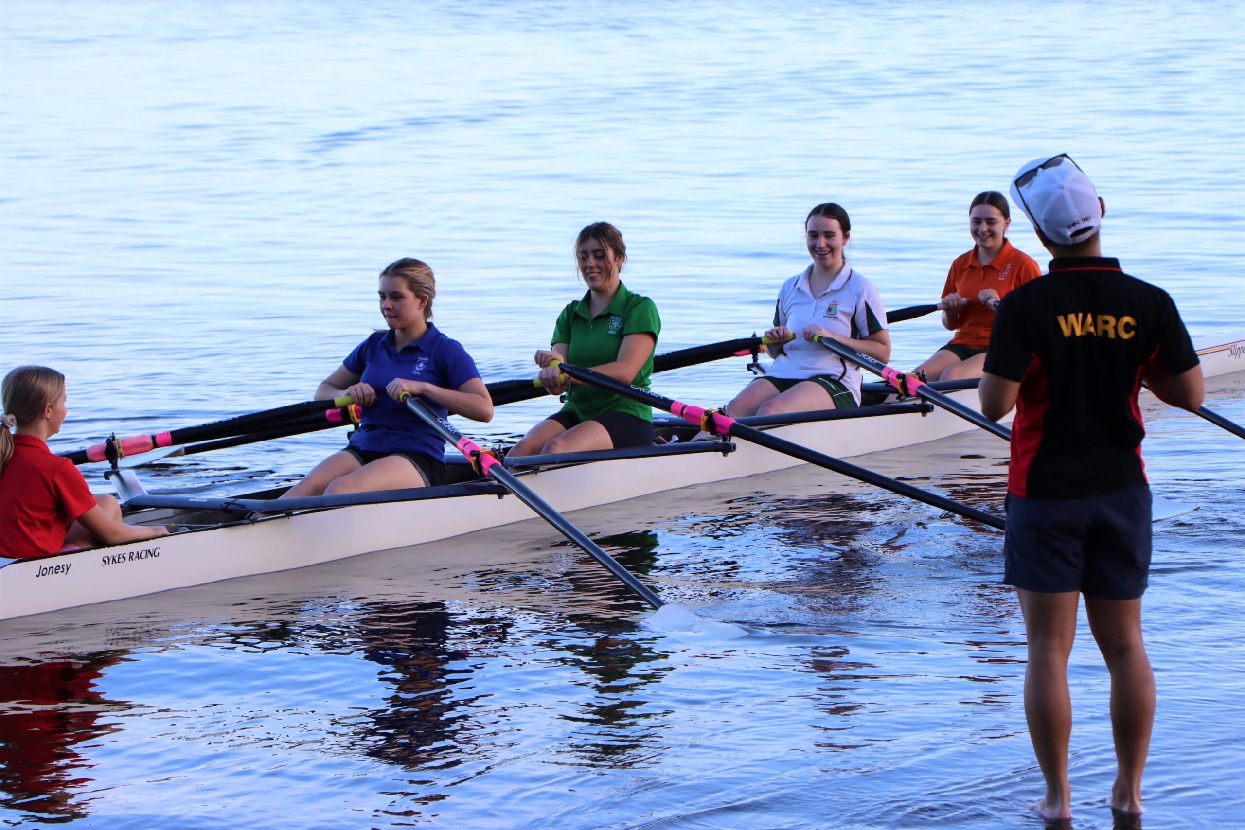 A great new sport program began last term with the re-introduction of rowing at Mercedes. In conjunction with the West Australian Rowing Club (a 152-year-old club), the girls train twice a week after school at the historic Barrack Square headquarters. The girls who elected to have a go, participated in the ‘Try Rowing’ days late last term. The Tryout days included running, rowing on land machines (ergos), riding stationary bikes and of course the water tryouts. A total of 16 girls have been selected and are now under the guidance of Head Coach; Joe Tamigi.