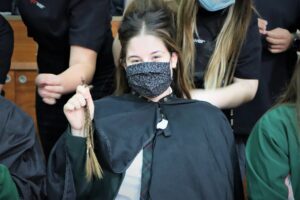 Congratulations to two of our Year 12 students; Anne Marie Fitzgerald and Mu Yang Zhou and the Year 12 Prefects for their wonderful fundraising effort for the Ponytail Project in WA.  Throughout the year the girls grew their hair as long as possible, alongside peers all across Australia, before coming together on Wednesday 5 May for the #chopforchange event.  Forty seven students and a teacher took their seats in the school hall and over lunch saw their locks drop into their hands. They raised more than $12000 and took out places 4th to 10th on the individual fundraising leader board in WA, and in Australia Mercedes College is SECOND overall in teams – a great effort!  All funds raised go towards essential cancer support services, prevention programs and lifesaving research.  This means everything from transport to get cancer patients to and from their medical appointments, to assisting childcare facilities to keep kids safe from the sun.